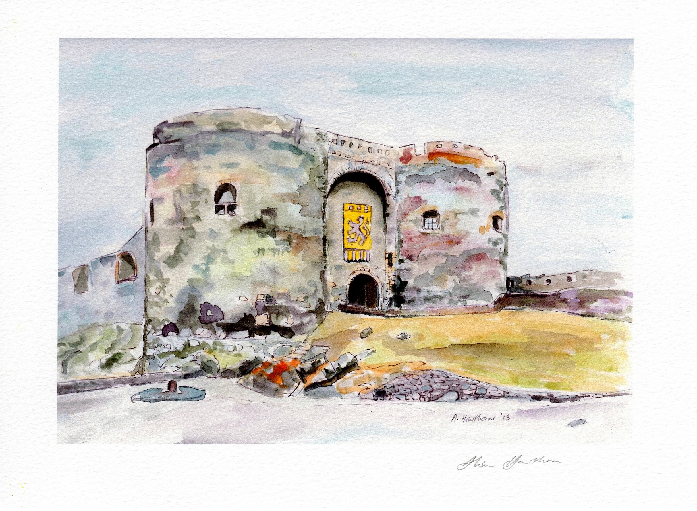 'CARRICKFERGUS CASTLE' signed print17cm by 12 cm image on quality watercolour digital A5 paper. |